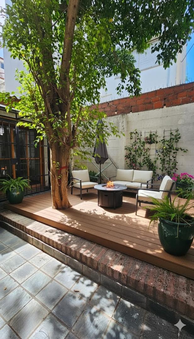 Luego se ubica otra sala/dormitorio o comedor diario (es el único que no tiene ventilación directa). Al costado, escritorio con vista al patio.
